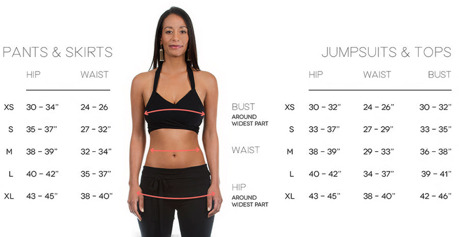 Jumpsuits & Pants - the hip measurement is more important than the waist, so go with the size that is closest to your hip.